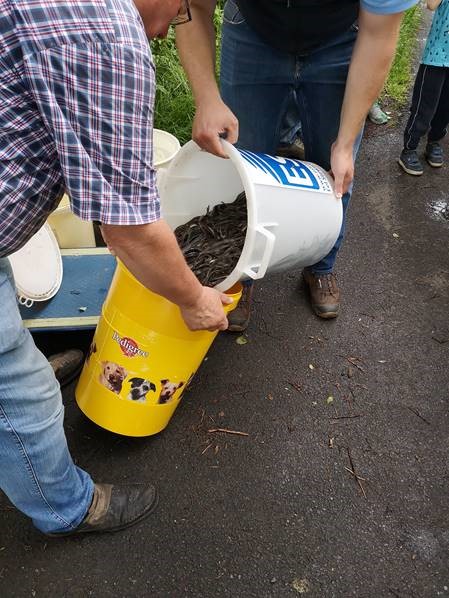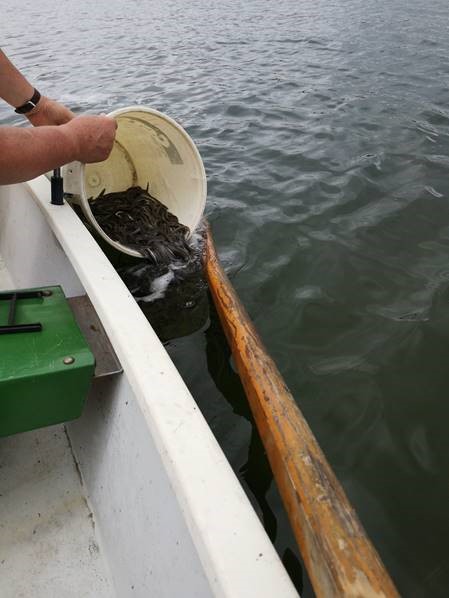 Am 12.06.19 erfolgte der vom LSFV geplante Besatz von ungefärbten vorgestreckten Farmaalen, am Stocksee.